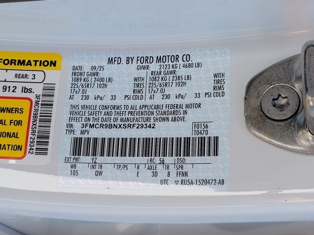 This 2025 Ford Bronco Sport come equipped with, 4-Wheel Disc Brakes, 6 Speakers, ABS brakes, Air Conditioning, Alloy wheels, AM/FM radio: SiriusXM, AM/FM Stereo, Auto High-beam Headlights, Automatic temperature control, Brake assist, Cloth w/Easy-to-Clean Front Bucket Seats, Compass, Delay-off headlights, Driver door bin, Driver vanity mirror, Dual front impact airbags, Dual front side impact airbags, Electronic Stability Control, Emergency communication system: SYNC 4 911 Assist, Four wheel independent suspension, Front anti-roll bar, Front Bucket Seats, Front Center Armrest, Front reading lights, Fully automatic headlights, Heated door mirrors, Illuminated entry, Knee airbag, Low tire pressure warning, Occupant sensing airbag, Outside temperature display, Overhead airbag, Overhead console, Panic alarm, Passenger door bin, Passenger vanity mirror, Power door mirrors, Power steering, Power windows, Radio data system, Rear anti-roll bar, Rear Parking Sensors, Rear reading lights, Rear seat center armrest, Rear window defroster, Rear window wiper, Remote keyless entry, Security system, SiriusXM, Speed control, Speed-sensing steering, Speed-Sensitive Wipers, Split folding rear seat, Steering wheel mounted audio controls, SYNC 4 w/Enhanced Voice Recognition, Tachometer, Telescoping steering wheel, Tilt steering wheel, Traction control, Trip computer, Variably intermittent wipers, Wheels: 17 Carbonized Gray-Painted Aluminum. Price includes: $2750 - Retail Customer Cash. Exp. 02/02/2026