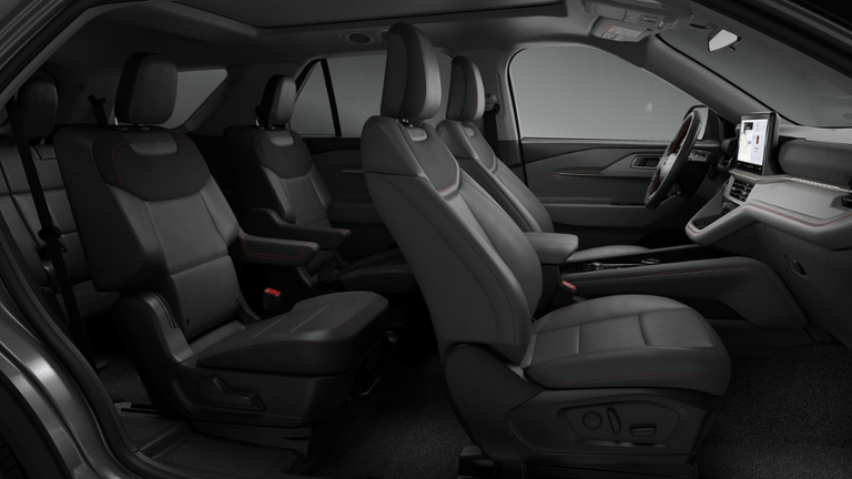 This 2026 Ford Explorer come equipped with, 4WD, 3rd row seats: bench, 4-Wheel Disc Brakes, 6 Speakers, ABS brakes, Air Conditioning, Alloy wheels, AM/FM radio: SiriusXM with 360L, AM/FM Stereo, Apple CarPlay/Android Auto, Auto High-beam Headlights, Automatic temperature control, Brake assist, Bumpers: body-color, Compass, Delay-off headlights, Driver door bin, Driver vanity mirror, Dual front impact airbags, Dual front side impact airbags, Electronic Stability Control, Emergency communication system: 911 Assist, Exterior Parking Camera Rear, Four wheel independent suspension, Front anti-roll bar, Front Bucket Seats, Front Center Armrest, Front dual zone A/C, Front reading lights, Fully automatic headlights, Heated door mirrors, Illuminated entry, Knee airbag, Low tire pressure warning, Navigation System, Occupant sensing airbag, Outside temperature display, Overhead airbag, Overhead console, Panic alarm, Passenger door bin, Passenger vanity mirror, Power door mirrors, Power driver seat, Power steering, Power windows, Rear air conditioning, Rear anti-roll bar, Rear reading lights, Rear window defroster, Rear window wiper, Remote keyless entry, Security system, Speed control, Speed-sensing steering, Speed-Sensitive Wipers, Split folding rear seat, Spoiler, Steering wheel mounted audio controls, Tachometer, Telescoping steering wheel, Tilt steering wheel, Traction control, Trip computer, Variably intermittent wipers, Wheels: 18 Sparkle Silver-Painted Aluminum, 4WD.