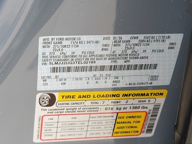 - Front Tire Size: P275/50HR22