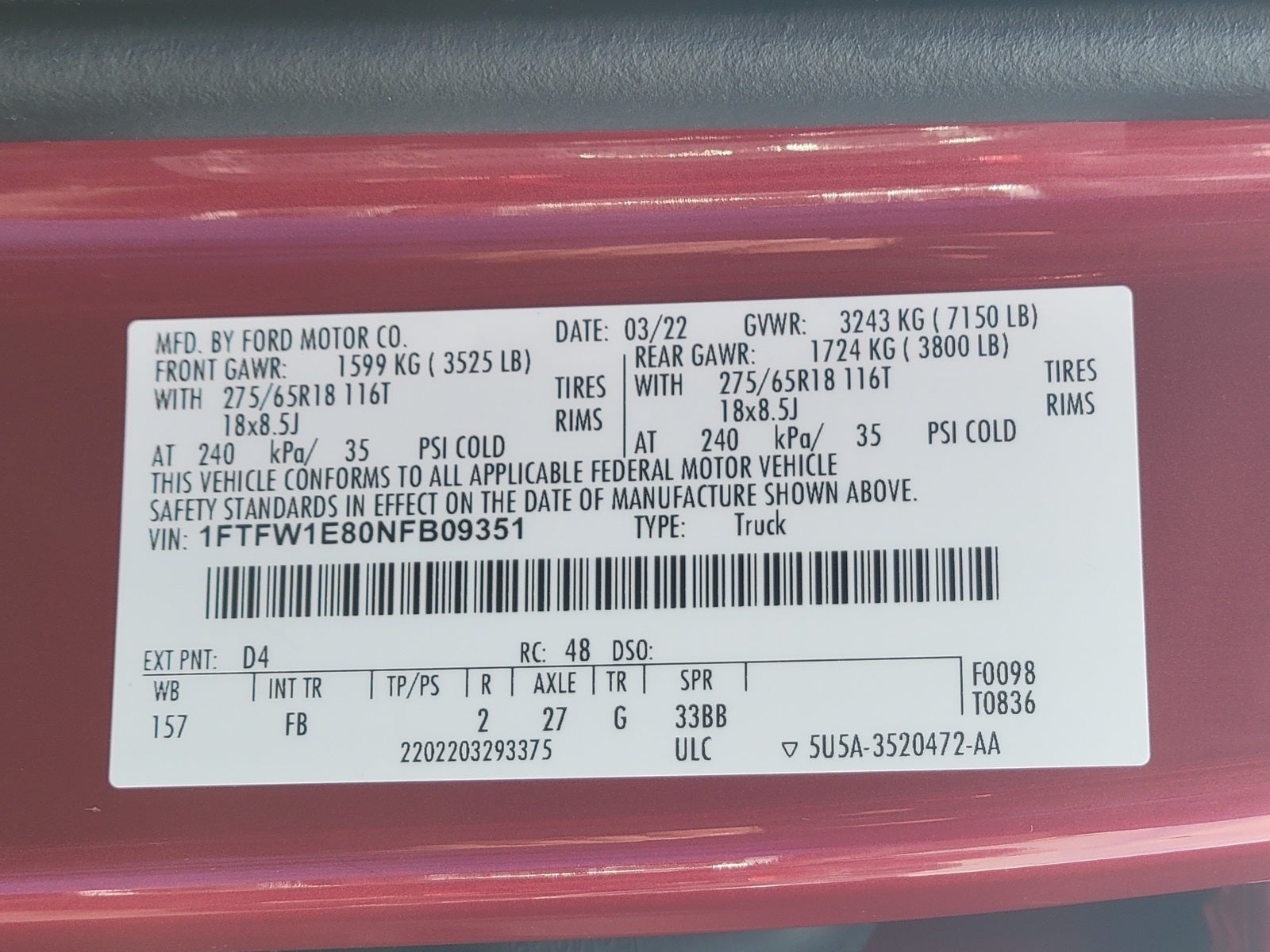 1FTFW1E80NFB09351
