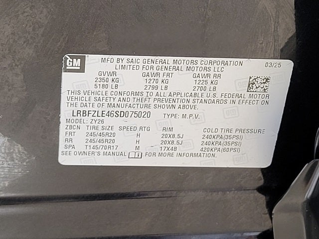 - Tires, P245/45R20 all-season