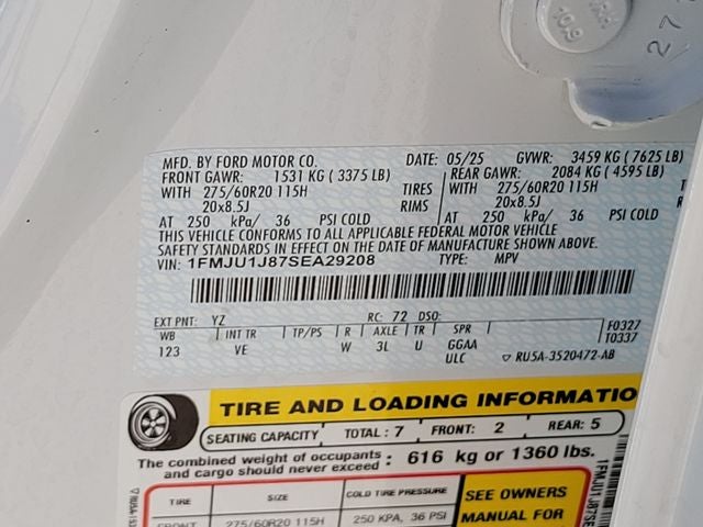 We are offering this 2025 Ford Expedition, in Oxford White and Dark Gray Premium Synthetic, CLEAN CARFAX ONE OWNER!, 110V/400W AC Power Outlet, 2nd Row Power-Folding Captain's Chairs, 360-Degree Zone Lighting, 3rd Row Flexible Seating, 3rd Row Vinyl Seats, 4-Door Intelligent Access (Lock/Unlock), ActiveX Front Heated Captain's Chairs, Apple CarPlay/Android Auto, Automatic temperature control, BlueCruise Equipped, Electronic Stability Control, Equipment Group 202A High Package, Exterior Parking Camera Rear, Flex Powered Console, Ford Split Gate, Front dual zone A/C, Front Side Laminated Glass, Heated door mirrors, Heated Steering Wheel, Heavy-Duty Trailer Tow, Memory Driver Seat, Navigation System, Outside temperature display, Power door mirrors, Power driver seat, Power Panoramic Vista Roof w/Power Sunshade, Power Tilt/Telescopic Steering Wheel w/Memory, Power-Folding Sideview Mirrors w/Autofold, Radio: AM/FM Stereo w/MP3 Capable, Rain Sensing Wipers, Rear air conditioning, Remote keyless entry, SecuriCode Keyless Entry Pad, SiriusXM w/360L, Steering wheel mounted audio controls, Telescoping steering wheel, Universal Garage Door Opener, USB Ports, Wheels: 20 Carbonized Gray Bright Machined Aluminum, Wireless Charging Pad. CARFAX One-Owner. Certified. EcoBoost 3.5L V6 GTDi DOHC 24V Twin Turbocharged 10-Speed Automatic 4WD